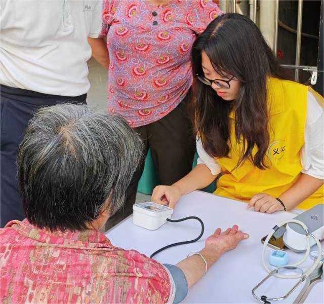圖為陳欣彤為老人量血壓的現場 后勤部部員蔡穎珊也向我們分享了她的深刻感受。七月的盛夏,萬物繁茂,她滿懷榮幸地作為義心服務隊的一員來到梅州五華縣周江鎮。這次活動讓她走出校園,深入鄉村,切實體驗到了農村醫療的發展現狀。她深知,只有真正了解群眾的需求和期盼,才能為他們辦實事,推動鄉村醫療的進步,實現“三下鄉”的真正意義。志同道合的伙伴們給予了她強大的力量支持,大家一起熱情義診,認真做問卷調查,耐心科普醫療知識,共同下廚做飯。在這個過程中,不僅鍛煉了實踐能力和團隊協作能力,更讓她深刻認識到作為大學生在鄉村振興中的責任和使命。“三下鄉”的實踐如一場意義深遠的遠足,在她的人生中留下了濃墨重彩的一筆。