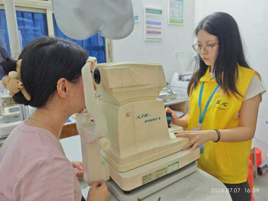 圖為蔡穎珊為村民進行眼睛檢查的現場