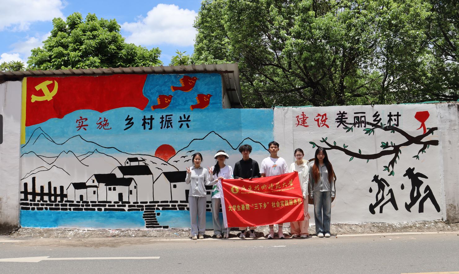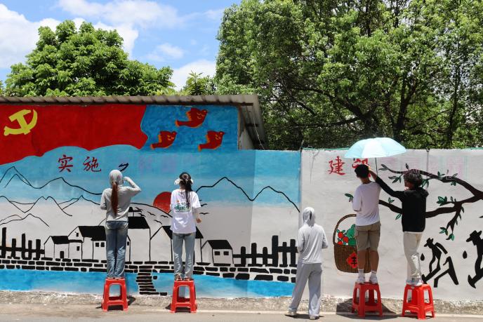 近日,廣東技術師范大學溯高思興百千萬工程突擊隊墻繪組,以“鄉村振興”為主題,在河源市源南鎮雙下村展開了一場別開生面的藝術創舉。在為期五天的密集創作中,團隊成員揮灑汗水,將雙下村深厚的歷史文化底蘊與現代藝術創新完美結合,為鄉村增添了一抹絢麗多彩的亮色。