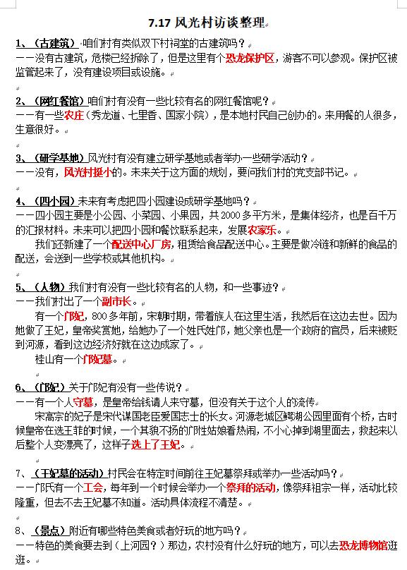 - “前期調(diào)研源南鎮(zhèn)+實(shí)地調(diào)研雙下、墩頭、風(fēng)光村”形成文稿21份,總計(jì)字?jǐn)?shù)69024。