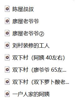 - “雙下村+墩頭村+風(fēng)光村”錄音文件共計(jì)25份,采訪人數(shù)約60+,人群范圍涵蓋普通村民、村委、司機(jī)、創(chuàng)業(yè)戶、自營(yíng)戶等等,類別囊括不同年齡段、不同工作崗位、不同身份地位的群體。