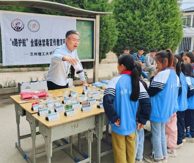 蘭州理⼯⼤學計算機與通信學院黨委副書記來明展、團委書記張國勇及志愿者服務隊協同當地學校校⻓、政府領導幫助當地中⼩學⽣普及禁毒知識,帶⼤家了解了各種毒品的危害,來源等。