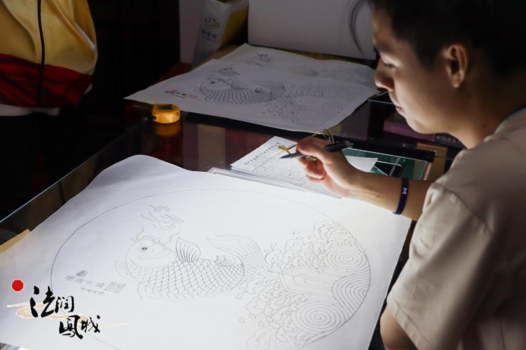 非遺傳承人秉承工匠精神,全力打造潮繡精品作品,讓潮繡成為手工名片。孫天誠先生的辦公室里堆滿了手稿,他說:“還是習慣用紙筆繪圖,但也要多感受科技的力量” 孫天誠先生利用現代科技,將畫稿通過PS、C4D等軟件繪制出來,使作品效果能更加直觀地展現出來。這種將傳統技藝與現代科技的結合進一步促進潮繡的創造性轉化和創新性發展。