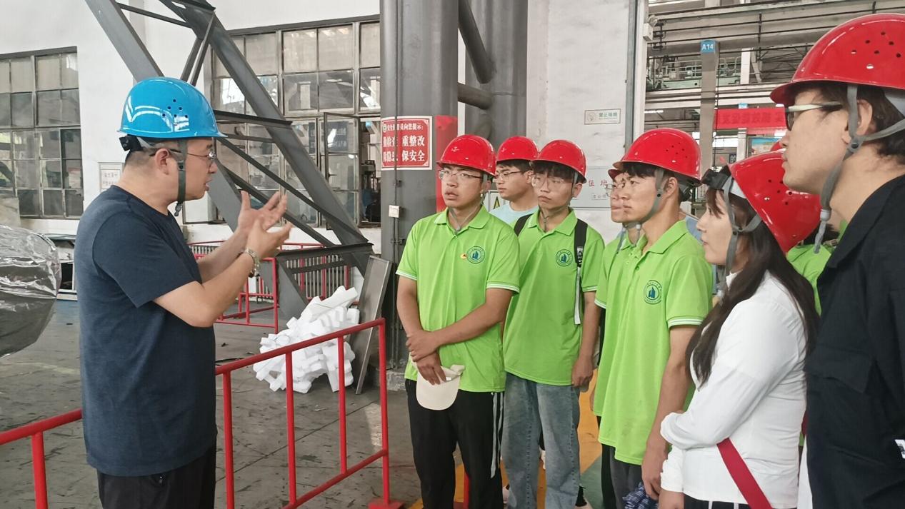 圖為副部長(zhǎng)向?qū)嵺`團(tuán)成員介紹JCOE大口徑直縫埋弧焊管生產(chǎn)線。 多彩大學(xué)生網(wǎng)通訊員 李雄 供圖