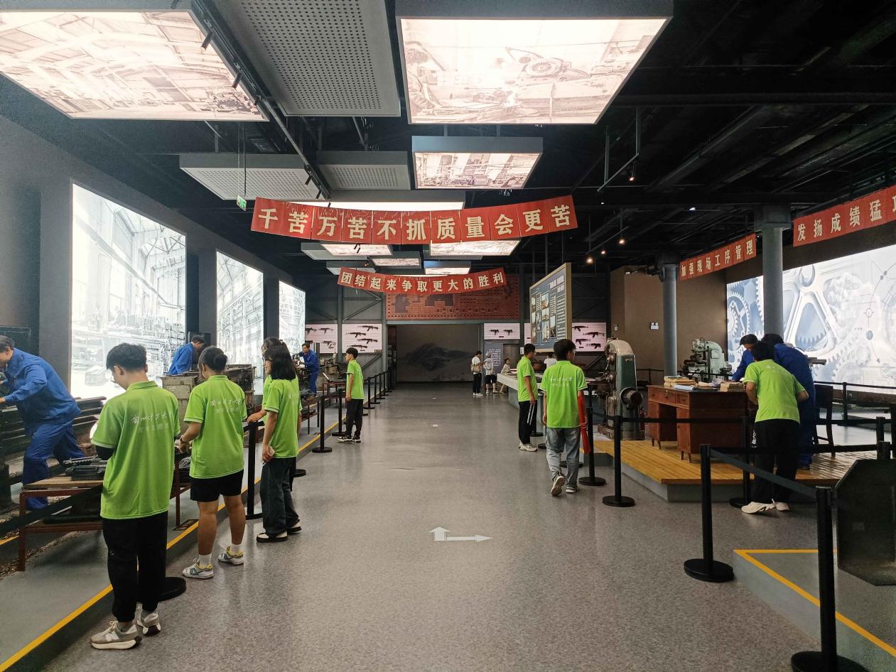2024年7月18日上午,實(shí)踐團(tuán)抵達(dá)了宛如時(shí)光寶藏般靜立在歲月長(zhǎng)河中的岷山軍工博物館,其獨(dú)特魅力依舊散發(fā)。走進(jìn)館內(nèi),如同踏入時(shí)光隧道,軍工發(fā)展的壯闊歷程徐徐展開。實(shí)踐團(tuán)成員依次參觀了“實(shí)業(yè)救國,求索追夢(mèng)”“轉(zhuǎn)型發(fā)展,保軍轉(zhuǎn)民”等發(fā)展歷程,深深感受到創(chuàng)業(yè)的艱辛。最初,資源匱乏、技術(shù)落后,簡(jiǎn)陋的車間和工具見證了軍工先驅(qū)們憑借堅(jiān)定信念和無畏勇氣邁出的艱難第一步。