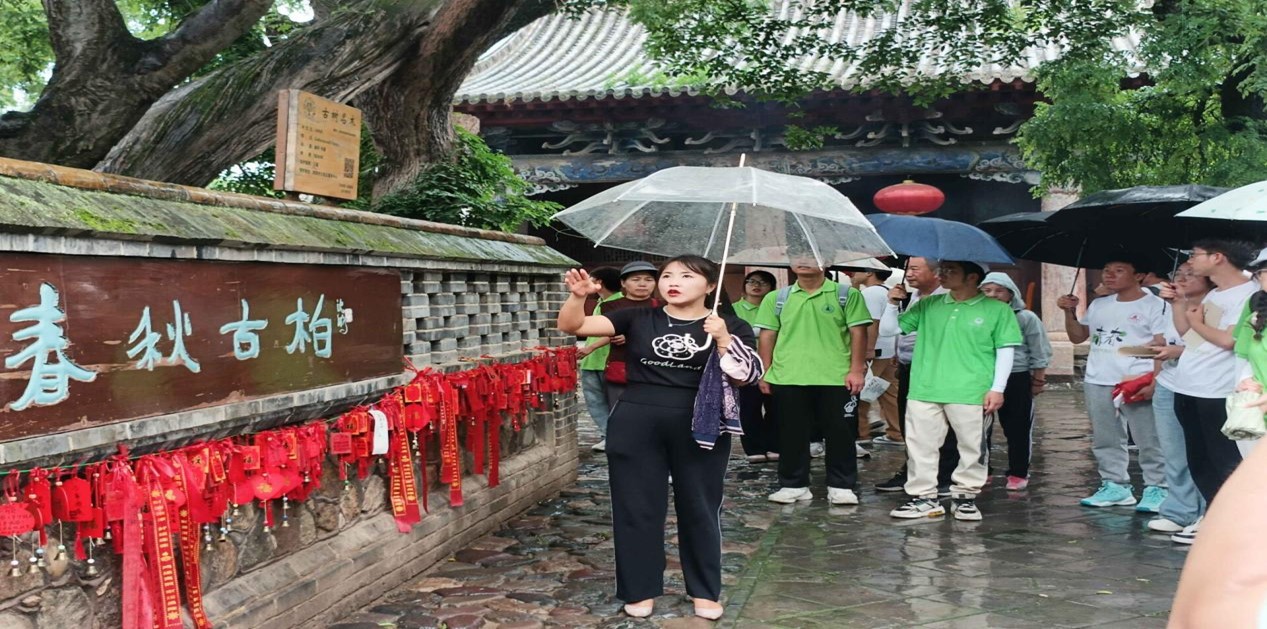 隨后,實踐團來到“隴上第一名剎”-----南郭寺。“山頭南郭寺,水號北流泉。老樹空庭得,清渠一邑傳。秋花危石底,晚景臥鐘邊。俯仰悲身世,溪風為颯然”這一首詩精妙絕倫、出神入化,寫的正是隴上第一名剎南郭寺,首先,講解員對南郭寺整體情況進行介紹,了解了杜甫詩,了解到杜甫在秦州起初是“滿目悲生事,因人作遠游”,而后是“身世浮沉詩心濃,熱腸滿腹憂黎民”,最終“身死于世,情寄于史”的感人故事。為了能讓實踐團更充分地領略南郭寺這一文化瑰寶的魅力,共青團天水市委的老師引領著我們一同品嘗北流泉的泉水。游覽至于實踐團更為深刻地知曉了春秋古柏的歷史傳奇。