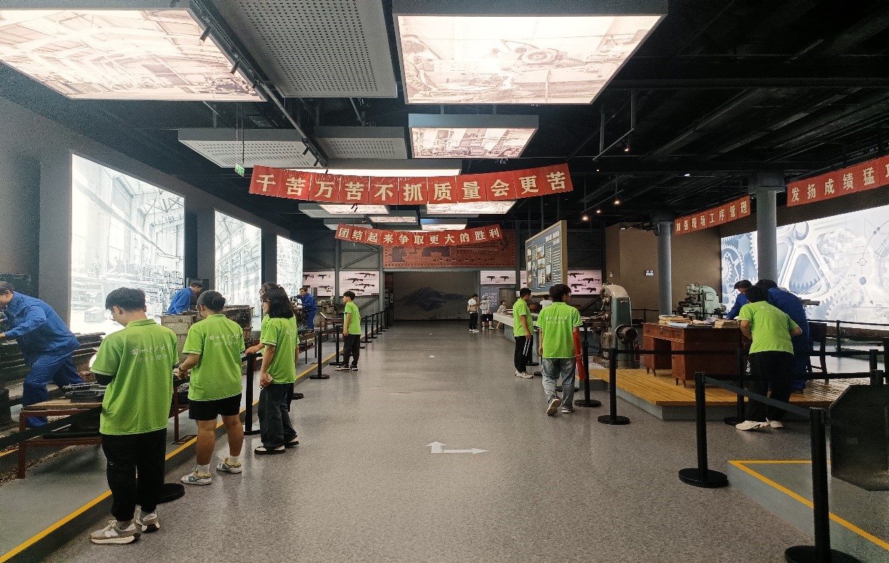隨后,實踐團來到了岷山軍工博物館。這里不僅展示了三線建設時期岷山地區軍工企業的輝煌成就,更是三線精神的生動體現。在博物館內,成員們通過參觀各類軍事裝備、工業產品,以及聆聽老一輩三線建設者的親身講述,深刻感受到三線建設者們團結協作、勇于創新的精神風貌。他們不僅在技術上不斷突破,更在精神上展現出了一種為國家、為民族無私奉獻的崇高情懷。