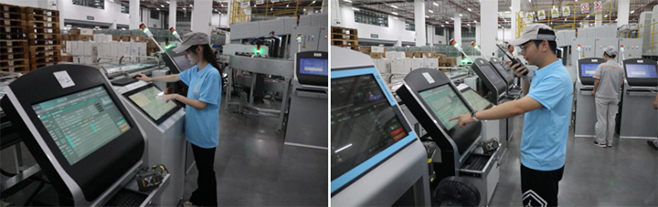 團隊成員操作分揀線監控一體機