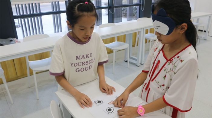 人們常說,只有擁有一雙明亮的眼睛,我們才能看到這個多彩的世界。但有這樣一群人,他們生活在黑暗之中,只能依靠觸覺、聽覺等感官來感知世界,他們就是視障者。我們往往在忙碌的生活中忽略了他們的存在。為了讓孩子們更好地了解視障人士的生活,團(tuán)隊精心設(shè)計了“五官貼紙游戲”、“散落玩偶收集”以及“給視障兒童的一封信”三個互動環(huán)節(jié)。這些活動旨在讓孩子們親身體驗視障者的日常生活,從而激發(fā)他們關(guān)注社會少數(shù)群體的意識,并在他們心中種下公益的種子。
