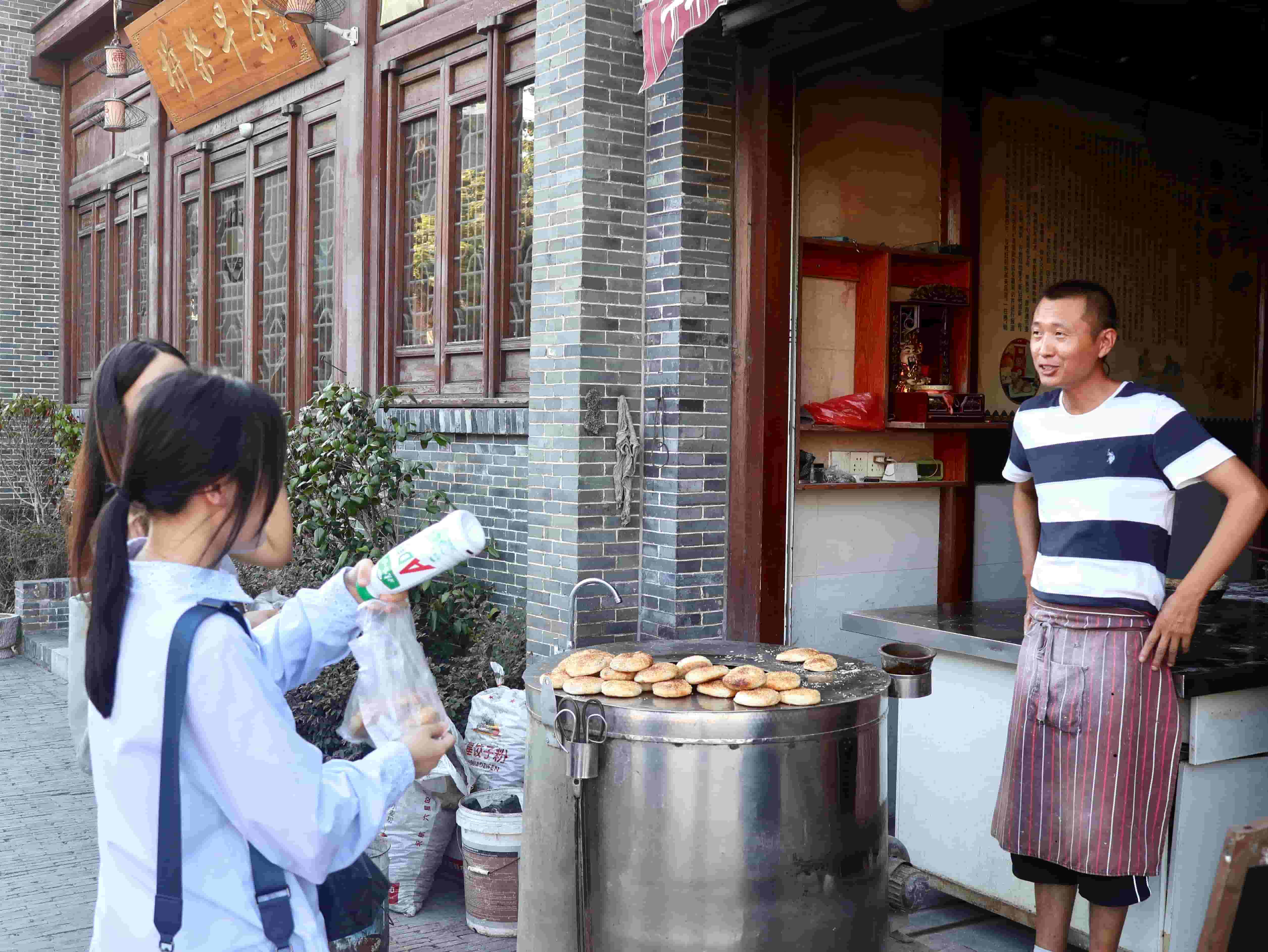 圖為團隊采訪傳統糕點傳承人學習古鎮對傳統手藝的影響 單雨欣攝