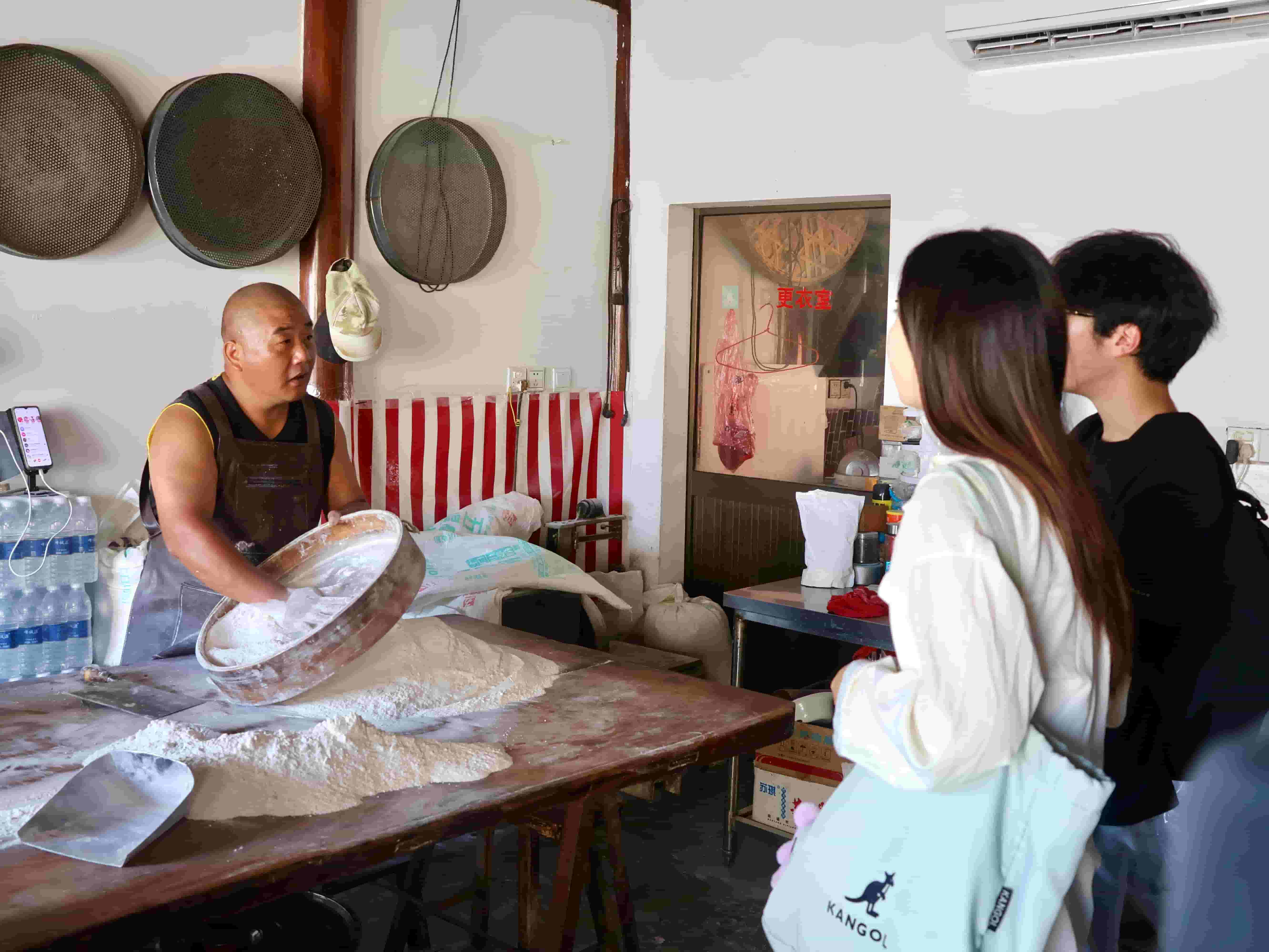 圖為實踐團隊采訪一柱樓燒餅傳承人朱師傅 單雨欣攝
