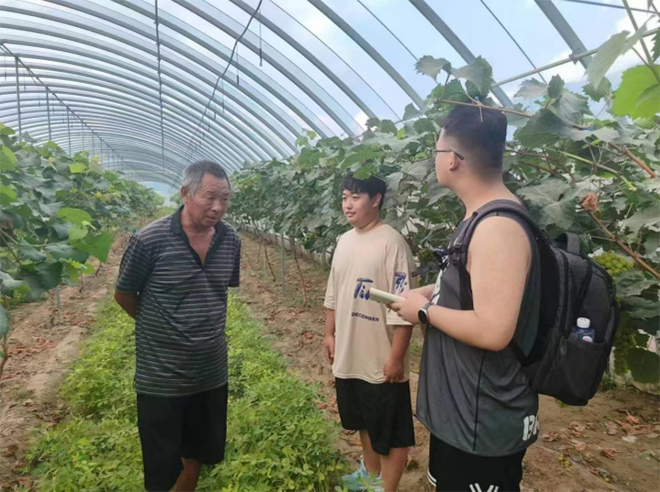 8月3日上午,調研團隊前往當地種植大棚進行了參觀學習。在這里,他們不僅親眼見證了現代農業科技的神奇魅力,還深入了解了大棚作物(如葡萄、花生等)的種植技術、管理方法以及市場前景等方面的信息。通過實地查看和與大棚負責人的交流,調研團隊對現代農業設施在抵御自然災害、提高作物產量和品質等方面所發揮的重要作用有了更加深刻的認識。