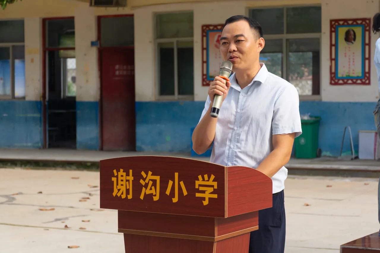 上午七點,支教隊隊員于學校門口迎接學生并引導其入班,開始早自習。早讀結束后,學生進入升旗場,按照年級列隊,開營儀式正式開始;顒右潦,謝敏峰代表謝溝村村委會與謝溝小學全體師生向豫見石光支教隊表示熱烈的歡迎與感謝。同時,謝敏峰寄語學生:要珍惜此次夏令營的機會,認真學習,爭取在夏令營中獲得新知識,掌握新技能。隨后,支教隊隊長王心宇代表全體支教隊員向學生做團隊及團隊成員的介紹,對謝溝小學的支持表示感謝。隨后,支教隊員依次上臺做自我介紹。開營儀式結束后,各班班主任帶領學生有序帶回教室。先是師生之間的自我介紹,然后是各種破冰小游戲的開展。通過“松鼠搬家”、“猜謎語”等小游戲的開展,師生之間有了進一步的了解。