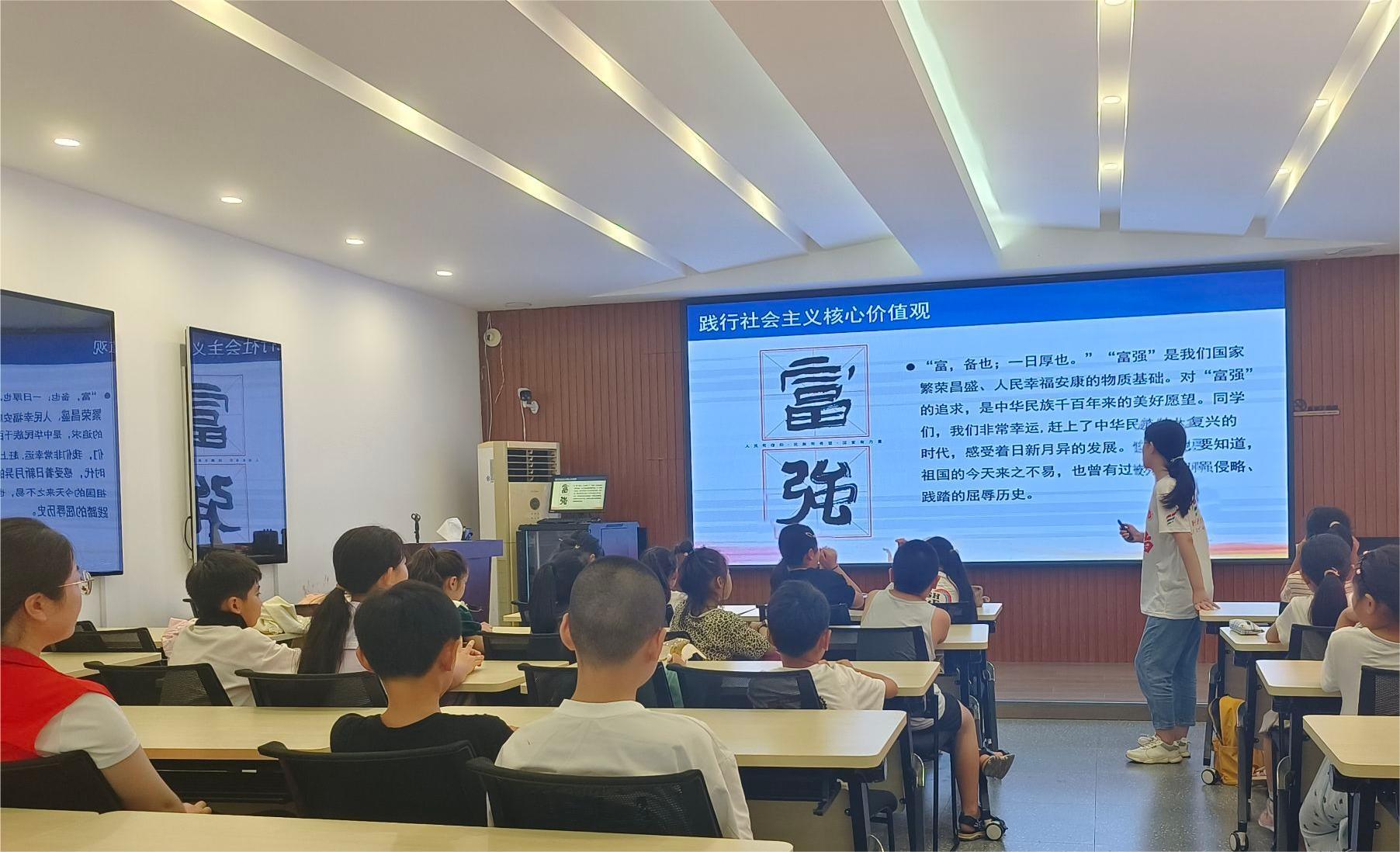 “祖國旗幟在我心”、“踐行社會主義核心價值觀,爭做文明少年”、“夸夸我的家鄉好—喜迎中華人民共和國成立75周年”三大課程。通過課件講解和體驗式教學,弘揚愛國主義精神、引導小朋友們樹立正確的價值觀。