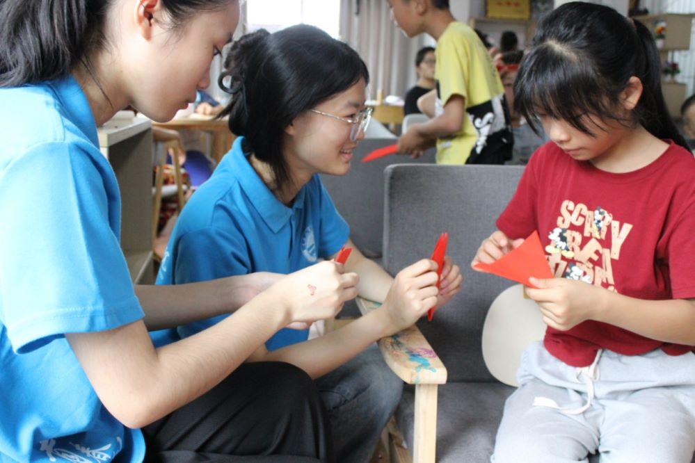 實踐團給每一個孩子都發了一張紅紙,讓他們自由創作,剪出自己想要的圖案。孩子們有不懂的地方,實踐團也會積極回答以及進行教學,讓他們更好的投身到剪紙這一藝術當中。