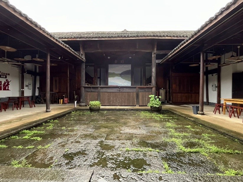 實踐團成員在初步掌握奇鶴村鄉(xiāng)村文化基本信息的前提下,進一步對村中文化禮堂、良渚文化進行調(diào)查收集,通過村領(lǐng)導(dǎo)的講述,文化禮堂是周邊鄉(xiāng)村延續(xù)時間最長、保存最完好的清朝禮堂,現(xiàn)在作為黨建活動、研學(xué)課堂等文化場所,仍然發(fā)揮著重要作用。文化禮堂內(nèi)寬敞舒適,增加了黨建學(xué)習(xí)、文化科普等元素,所保留的戲臺、供奉臺等老物件完好如初,建筑結(jié)構(gòu)養(yǎng)護較好。