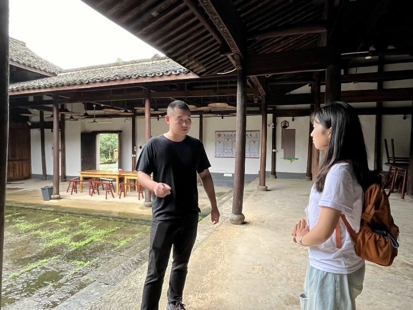 “以藝鄉(xiāng)建”大學(xué)生暑期社會實踐團赴余杭區(qū)瓶窯鎮(zhèn)奇鶴村進行實踐考察8月1日,浙江農(nóng)林大學(xué)“以藝鄉(xiāng)建”大學(xué)生暑期社會實踐團再赴余杭區(qū)瓶窯鎮(zhèn)奇鶴村,根據(jù)初次調(diào)研中得到的數(shù)據(jù)進行初步的分析,吸取“千萬工程”的成功經(jīng)驗,開展文化禮堂專項調(diào)查項目,旨在通過深入挖掘傳統(tǒng)文化元素等方式進行藝術(shù)賦能,為奇鶴村貢獻了寶貴的文旅發(fā)展建議。