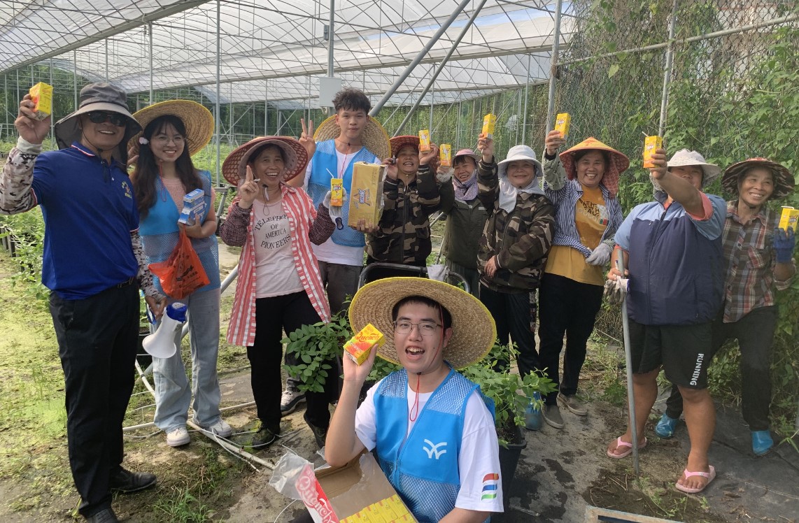 (圖為團隊給農民送解暑飲料)