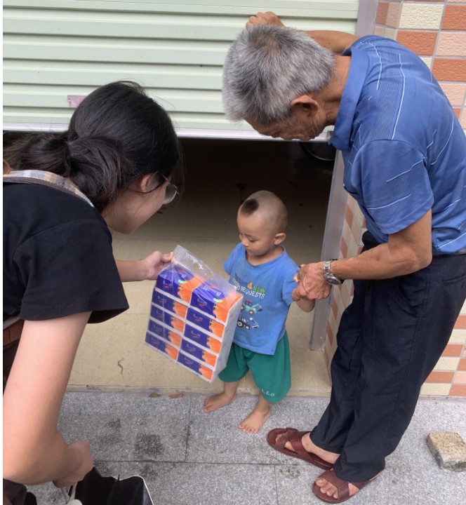 (圖為隊員給老人送去愛心物資)