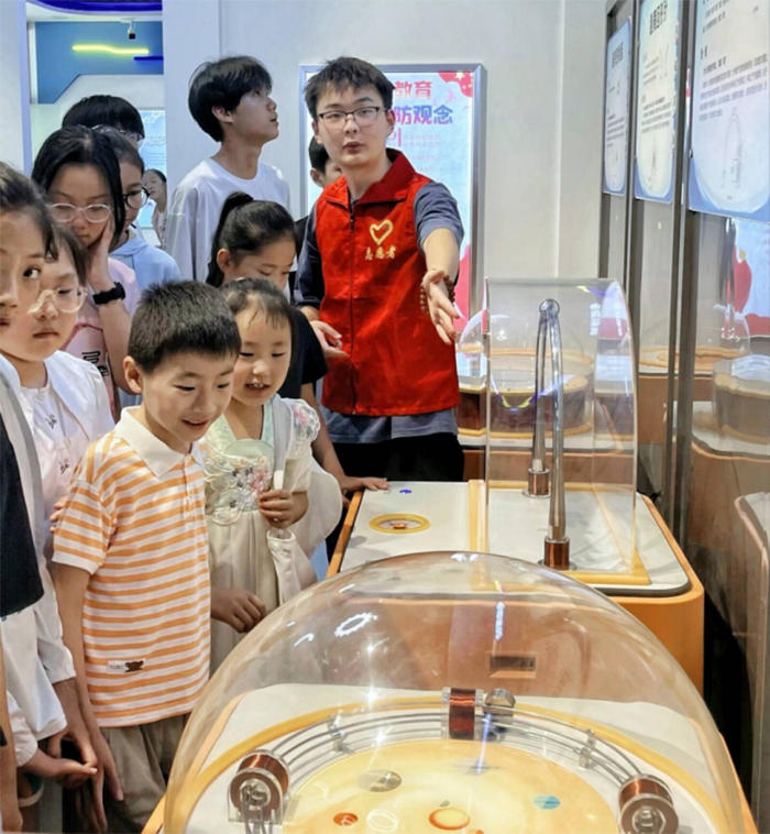 科技展覽課 李志偉: 活動中心的科普館中有各種數(shù)學(xué)物理的實驗?zāi)P停覔蔚氖菍嶒災(zāi)P椭v解老師,為學(xué)生們展示并簡單介紹模型的緣由。看著孩子們圍在當前講解的模型前,全神貫注地看著我手中不斷變換的模型時,我看到了教育事業(yè)的蓬勃發(fā)展與祖國未來的無限可能。孩子對于未知的事物是充滿好奇心與求知欲的,正確的引導(dǎo),更有利于孩子們未來的學(xué)習(xí)。例如勾股定理、磁生電,孩子們能夠接觸實驗的模型,而不是僅憑借書上枯燥的文字敘述去天馬行空地想象,無異于為學(xué)習(xí)的道路架起了一座橋梁,跨過了許多坎坷,這是國家對教育事業(yè)的重視,也是祖國更加強盛的“發(fā)動機”。
