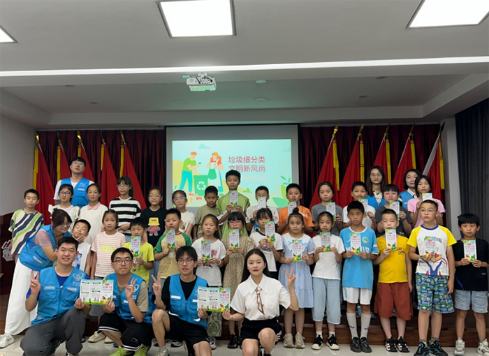圖為實(shí)踐成員與小朋友宣傳垃圾分類(lèi)合影 王欣 供圖
