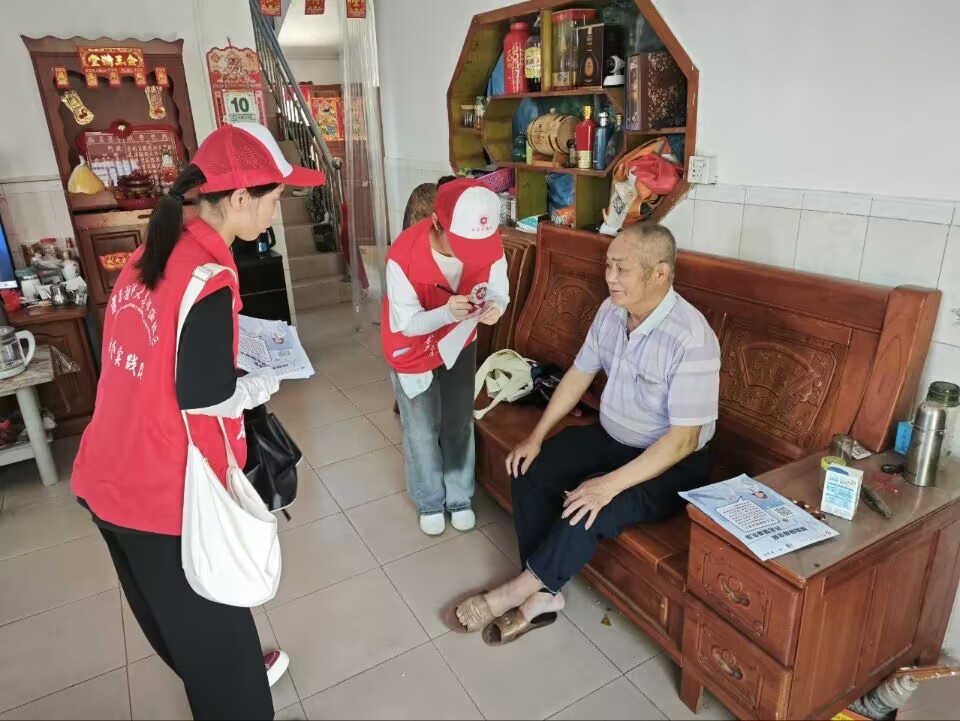 圖為居民在填寫調查問卷,醫食無憂小隊成員在向其宣傳肝吸蟲病相關知識 實踐隊成員 吳安平 攝
