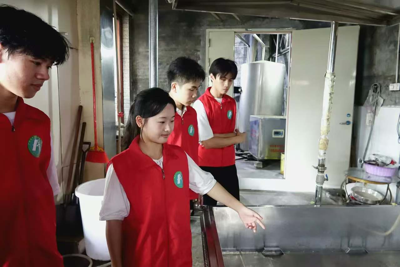 隨后,隊員們跟隨老板踏入酒坊內部,濃郁的酒香味撲鼻而來,仿佛在訴說著歲月的故事。實踐隊員們仔細觀察每一個釀造環節,并不斷向酒坊師父們請教問題。