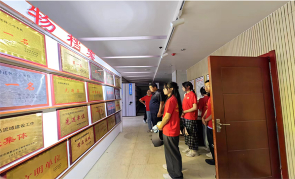 工作人員帶領(lǐng)實(shí)踐團(tuán)成員參觀退耕還林檔案室