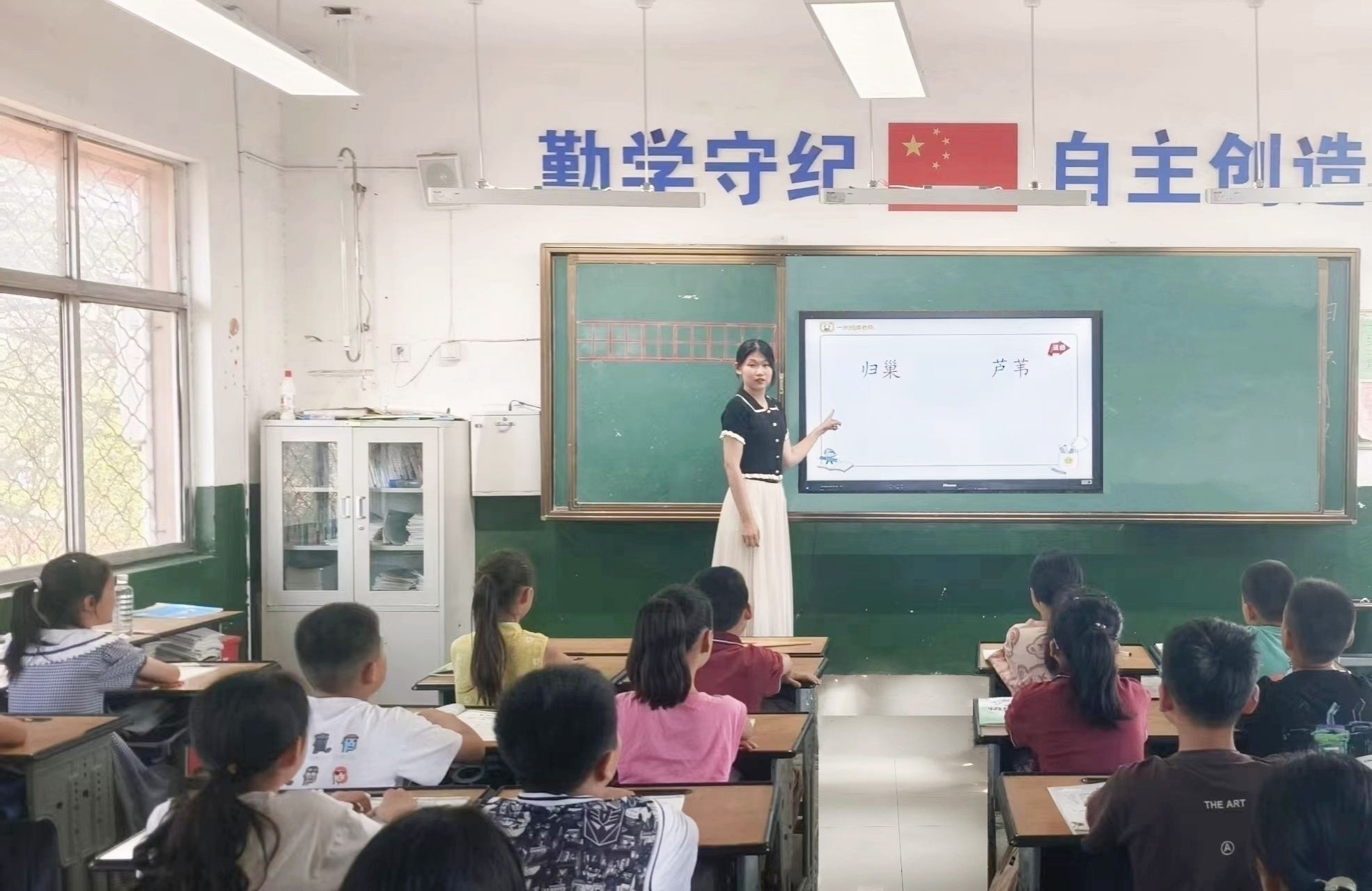圖為實(shí)踐成員向?qū)W生們傳授漢字知識(shí)。劉美含 攝