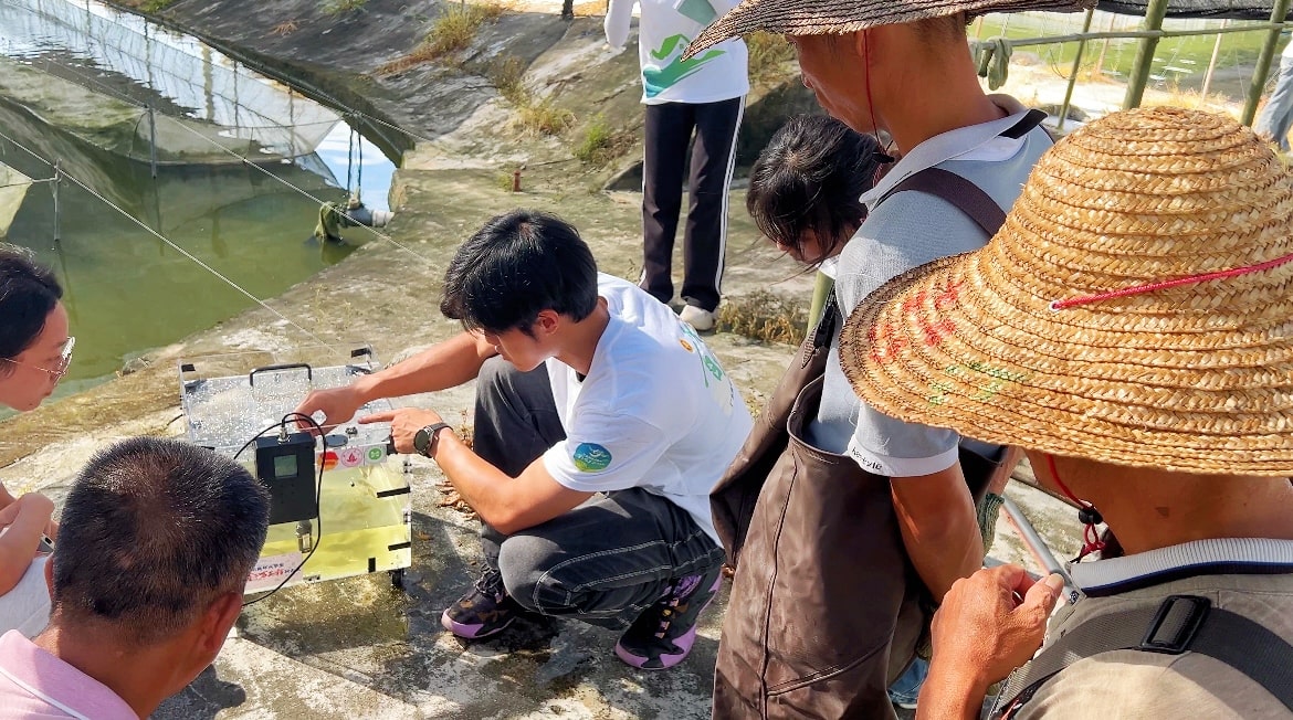 “漁”躍鄉村實踐團為都斛村漁民講解團隊研發的智慧魚苗運輸設備