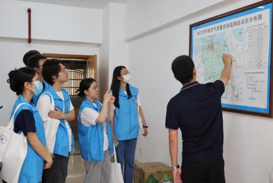 海南凈 灘小隊首先來到位于?诘沫h境監測局,在?谑猩鷳B環境局周科長和方老師的幫助和講解下,對中心檢測儀器的運行程序和原理進行了解,而后通過講解和搜集資料全面知曉了在持續通電和停電情況下檢測儀器不間斷工作的機理和所需條件。在此之后,方老師又向海南凈灘小隊介紹了在海南各市縣設置的監測站點,著重介紹了位于?诘牟煌轿坏奈鍌站點和選址原因。在理論介紹完畢后,周科長和方老師帶領海南凈灘隊的成員們開始了巡視檢查各站點的行程。在周科長和方老師的帶領下,小隊成員通過實地參觀水質自動監測站、空氣質量監測站以及紅樹林生態觀測點直觀感受到了現代科技在生態環境保護中的重要作用。特別是以紅樹林生態觀測點為代表的設置,不僅記錄了紅樹林濕地群落的生長變化,還監測了海水鹽度、溫度、溶解氧等關鍵環境因子,以及各種空氣污染分子的濃度變化,為科學評估東寨港濕地生態環境的健康狀況提供了重要依據。在參與巡察工作的過程中,海南凈灘小隊的成員們也見到了更多種類的檢測儀器,它們或笨重或輕巧,或簡單或精密,但都對于環境指標檢測不可或缺。二氧化碳、二氧化氮、PM2.5 、PM10、臭氧等氣體或懸浮物均被列為環境污染指數的判定標準,自然也是各個監測站的重點監測對象,方老師也通過具體的監測數據向同學們介紹了如今的環境狀況和需要重點防治的方面,還鼓勵同學們對于環境污染防治提出可行性建設性建議,讓同學們有了更多的參與感。