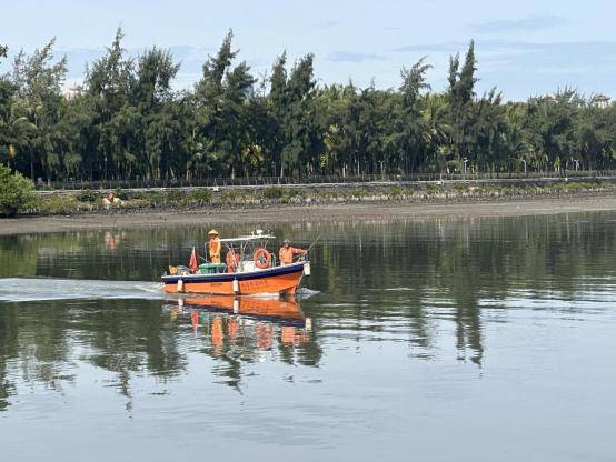 小隊在海南省園林及城市規劃管理局工作人員的推薦下來到?谑旋埲A區龍珠灣海上及海岸環衛作業點進行學習。海南凈灘 小隊在環衛作業點張部長的帶領下來到?跓衢T景點云洞圖書館附近進行采訪和實踐。清晨的風很涼爽,但環衛工人早已累得大汗淋漓。長長的堤 壩上鋪滿奇形怪狀的石頭,環衛工人艱難地在其間行走并不時俯身拾 撿散落的垃圾,沒一會兒裝垃圾的袋子就鼓了起來。走過堤壩來到靠 近岸邊的地方,海南凈灘小隊的成員們與張部長乘上船,跟著海上作業的環衛工人們一起參與到海上垃圾管理的事務中。紅色的龍馬環衛衣服在朝陽映照下格外耀眼,他們站在船頭撐著帶著網的桿子,俯身,低頭,手臂劃過完美的弧度,眼疾手快地將漂浮于海面的垃圾撈至船上的桶中,陽光下塑料制品反射出強光,照射在船的一角。據領頭的環衛工人所說,這樣的巡;顒右惶煲M行好幾次,每次持續時長在兩小時左右,無論是風和日麗還是狂風暴雨都不會中止。了解了海上執勤情況的隊員們又回到岸邊,對于負責堤壩環境衛生的工作人員和相關負責人進行了采訪詢問。事實證明,來自游客游玩的垃圾是目前已知的最大污染源,保護環境意識不強是造成這種狀況的首要原因,對此,海南凈灘小隊成員在附近也展開了相關的宣傳活動,希望能動員更多游客體會工作人員的辛苦,把垃圾丟到垃圾桶,為工作人員減少負擔。