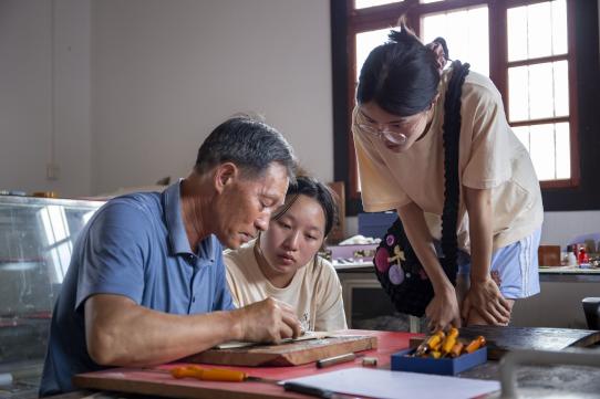 團隊成員學習壯族農民版畫 霍柄昊攝