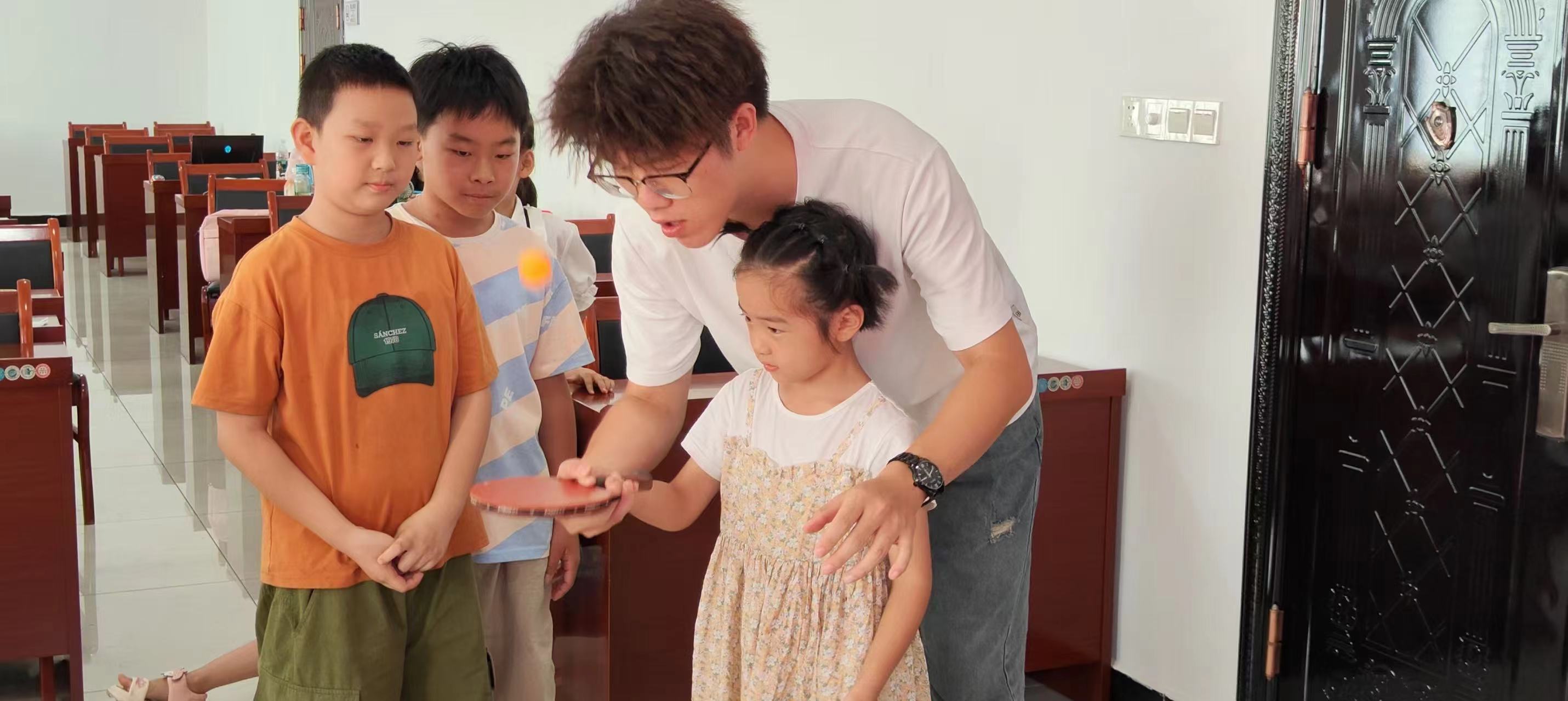 科普過后,是對孫穎莎等奧運健將的故事分享,增強小朋友對奧運精神和體育精神的感悟。同時介紹國球并教學乒乓球協作顛球這一基礎有趣的練習,不僅讓小朋友學到了體育技能,更重要的是能夠讓他們在實踐中體驗到拼搏精神、團隊協作以及永不言敗的態度。