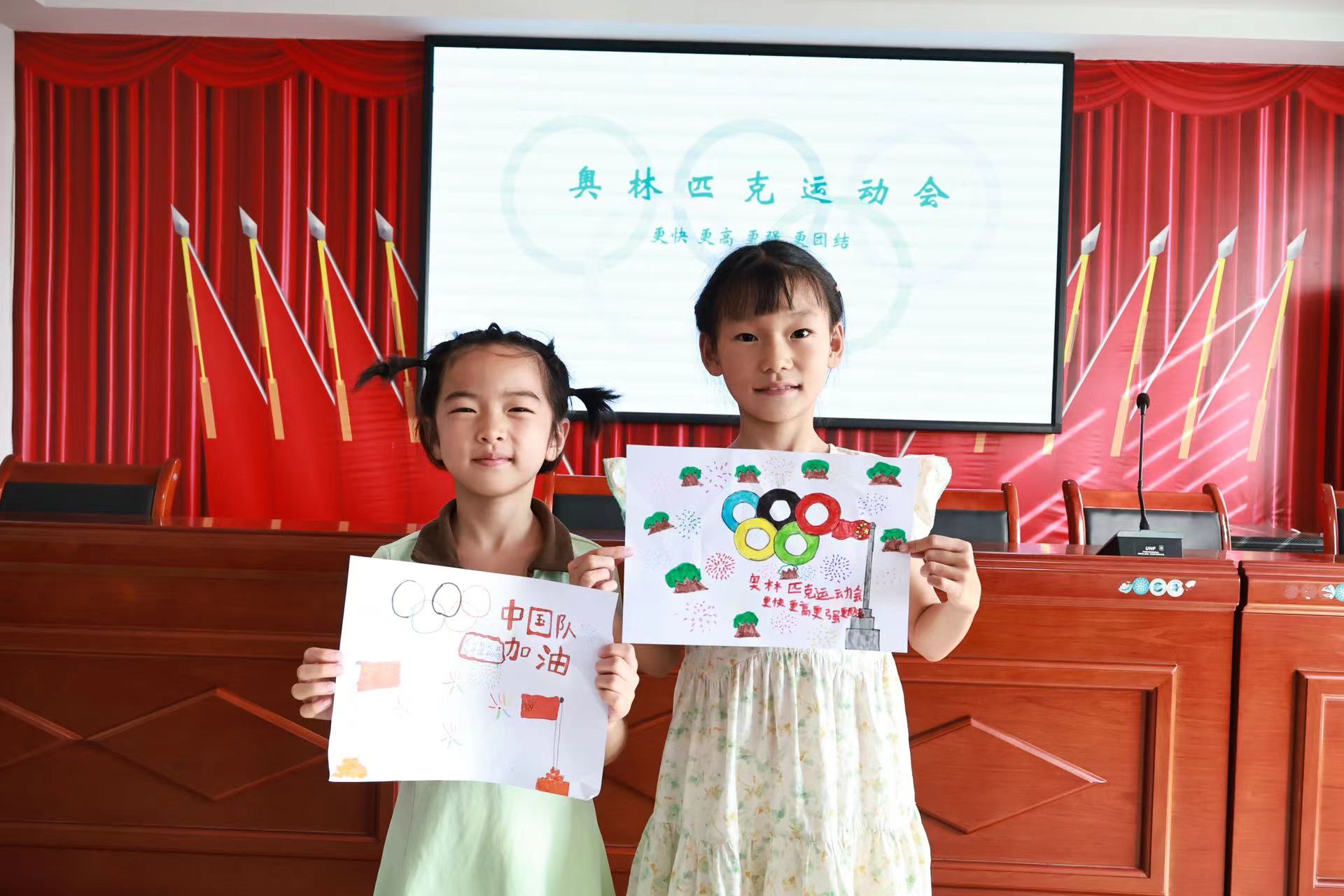 志愿者們最后進行了“我為奧運加個油”繪畫活動,小朋友將自己心中的奧運會和運動員通過畫作傳遞給世界,同時也是奧運精神在賽場外的體現。