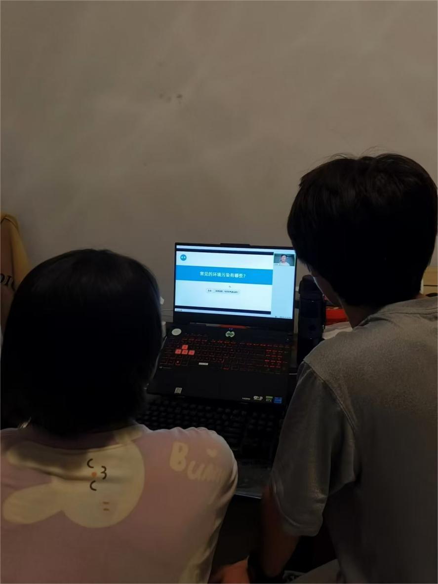 上圖為志愿者與小朋友開展“一起云課堂”活動關注環境保護的議題,讓他們萌發環境保護的意識,養成保護環境的良好習慣。(圖一由王健承供圖、圖二由倪文彰供圖)