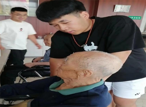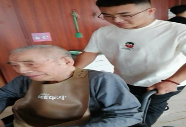 圖為實(shí)踐團(tuán)成員照顧老人日常起居