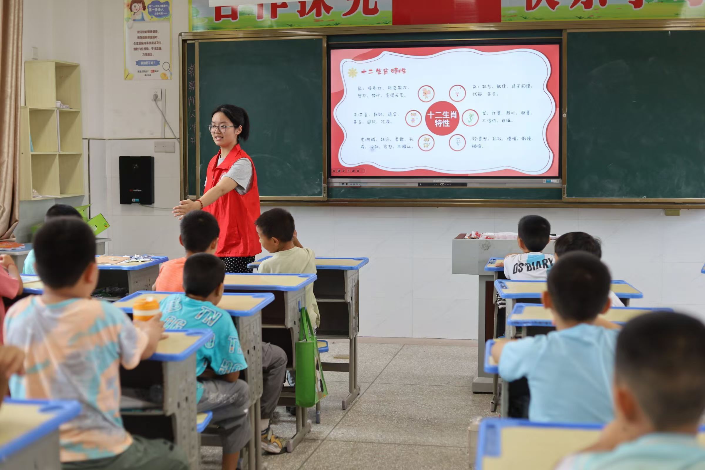 圖為志愿者向孩子們講述我國十二生肖的特性,并向孩子提問所講述的內(nèi)容。呂柳霖 供圖