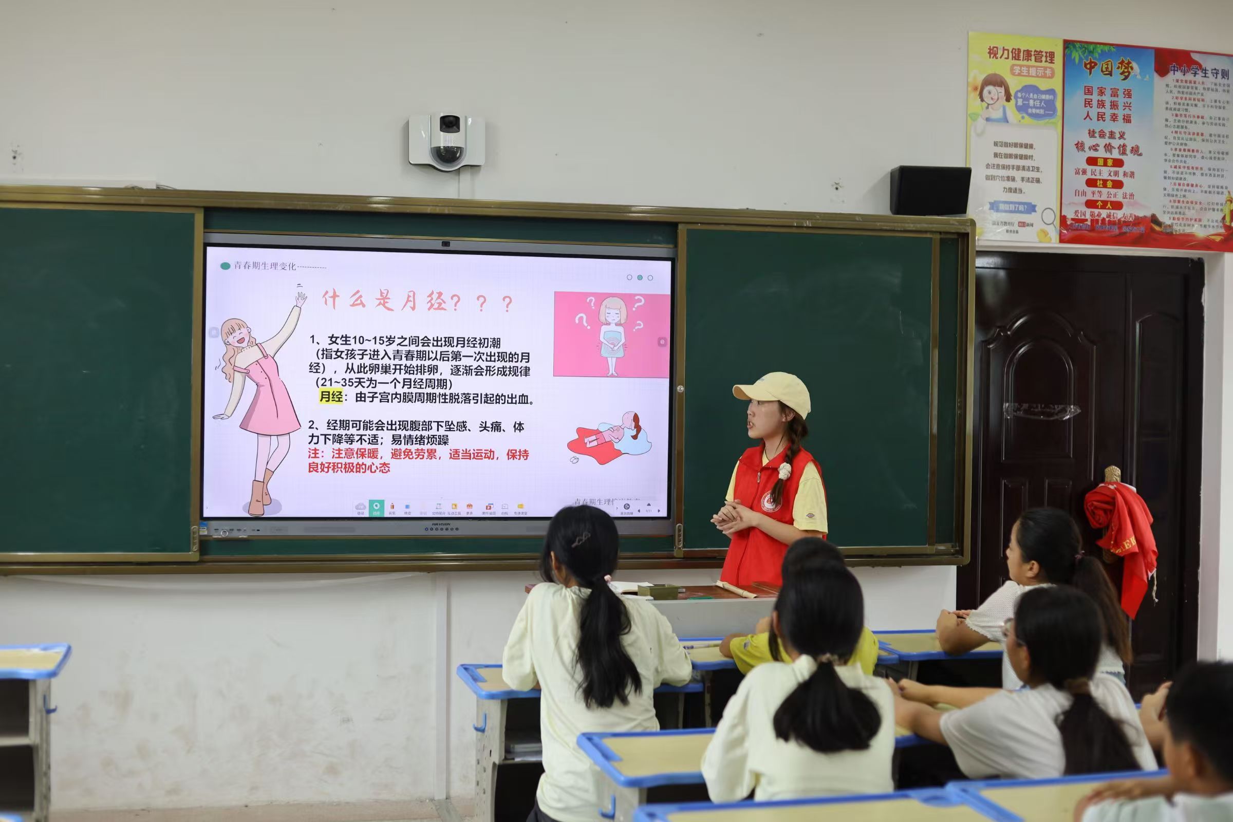 圖為志愿者在科普青春期性教育知識(shí),教授孩子們?nèi)绾握_對(duì)待青春期身體的變化。呂柳霖 供圖