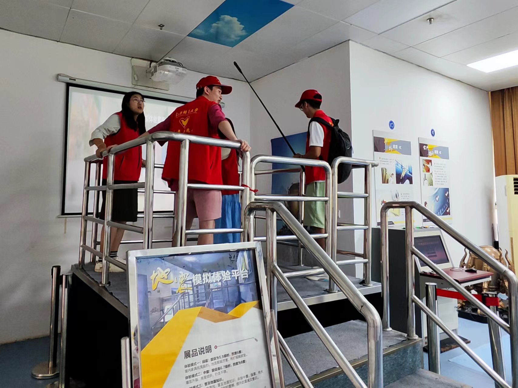 隊員們體驗了科技館的災害模擬區,在利用VR技術亦或是實景技術模擬臺風和地震的環境中,強烈的震動和逼真的音效讓人們仿佛置身于真實的災難現場,實踐隊成員大多從未經歷過地震和臺風,這種沉浸式的體驗不僅考驗了團隊的在面臨危機事件時心理素質,更教會了實踐如何在危險中保持冷靜,采取正確的自救互救措施,相信在未來,通過更加完備的設施,社會的普及度也會大大增高。