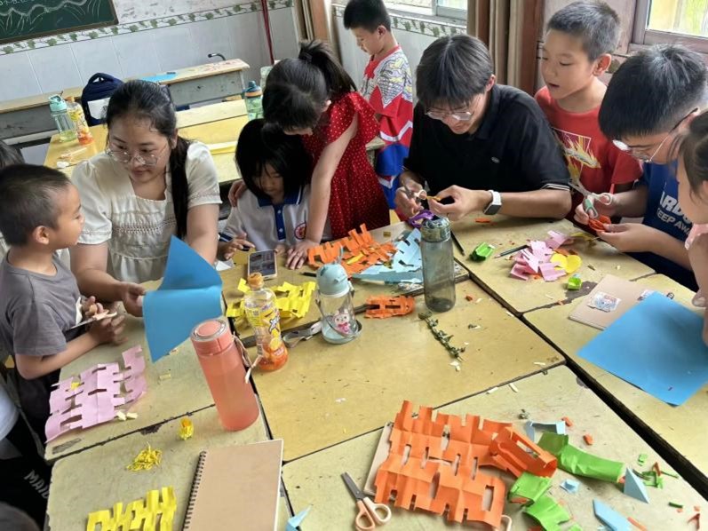 非遺剪紙:傳承傳統藝術精髓團隊成員為孩子們精心策劃了獨具特色的剪紙課程,深入講授方勝紋和雙喜剪紙技藝。在傳授剪紙技巧的同時,團隊還著力挖掘剪紙背后的文化內涵,向孩子們講述傳統文化之美,孩子們在學習傳統剪紙技藝的過程中,不僅提升了動手能力和藝術審美,也深化了對傳統藝術的理解。眾多兒童表示,他們對剪紙藝術產生了深厚的興趣,期望將來能繼續學習這一寶貴的非遺藝術形式。