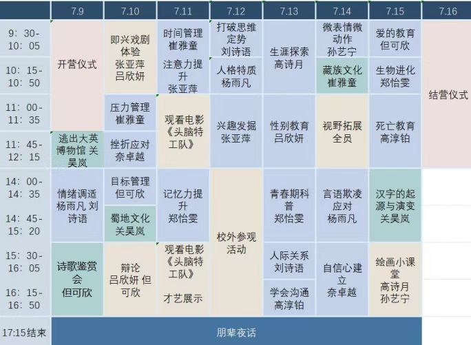 *紫色為心理健康課,綠色為文化課,黃色為素質拓展課