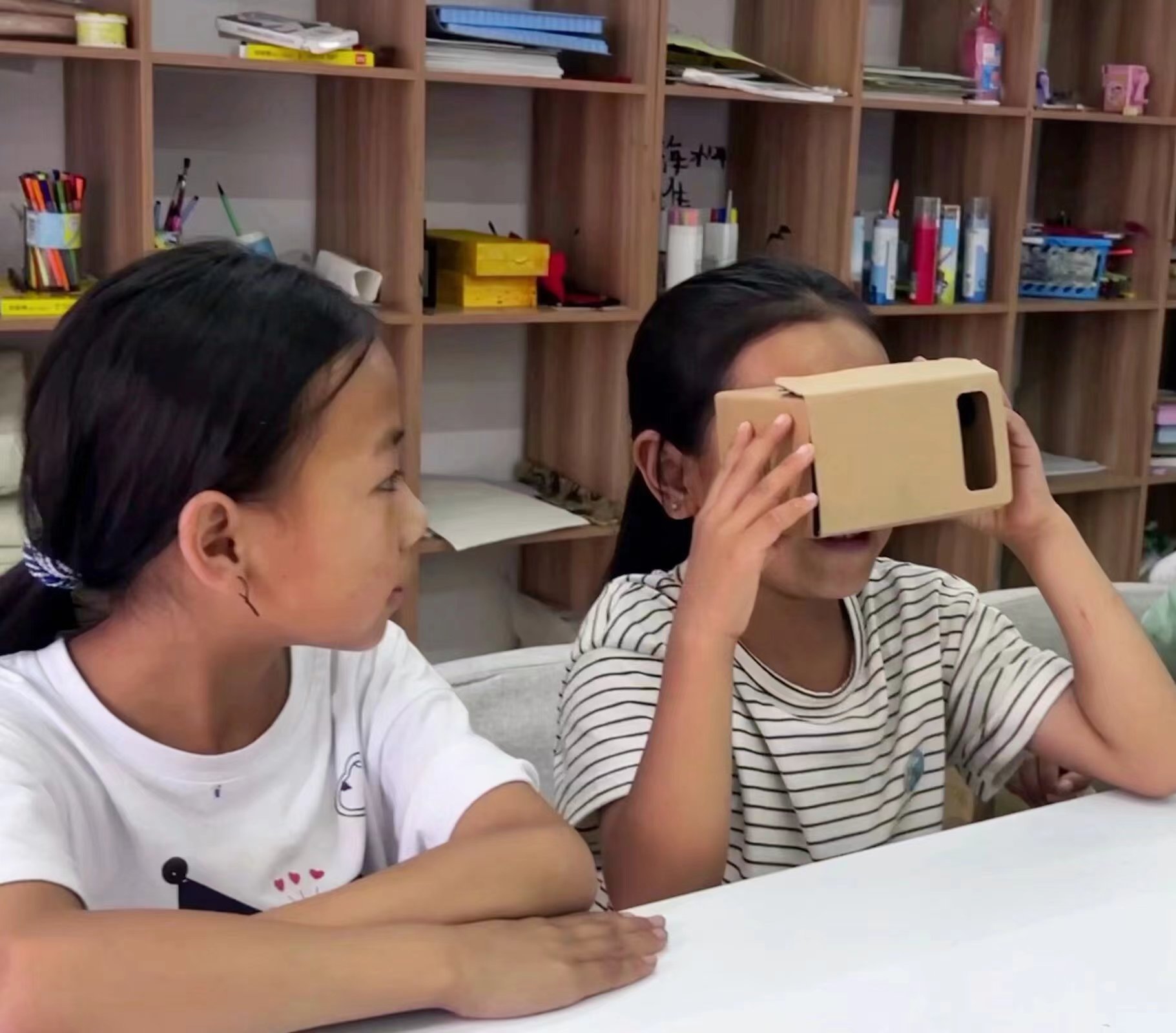 圖為科技課程——感受飛行的動力和VR眼鏡的神奇(何維希攝)