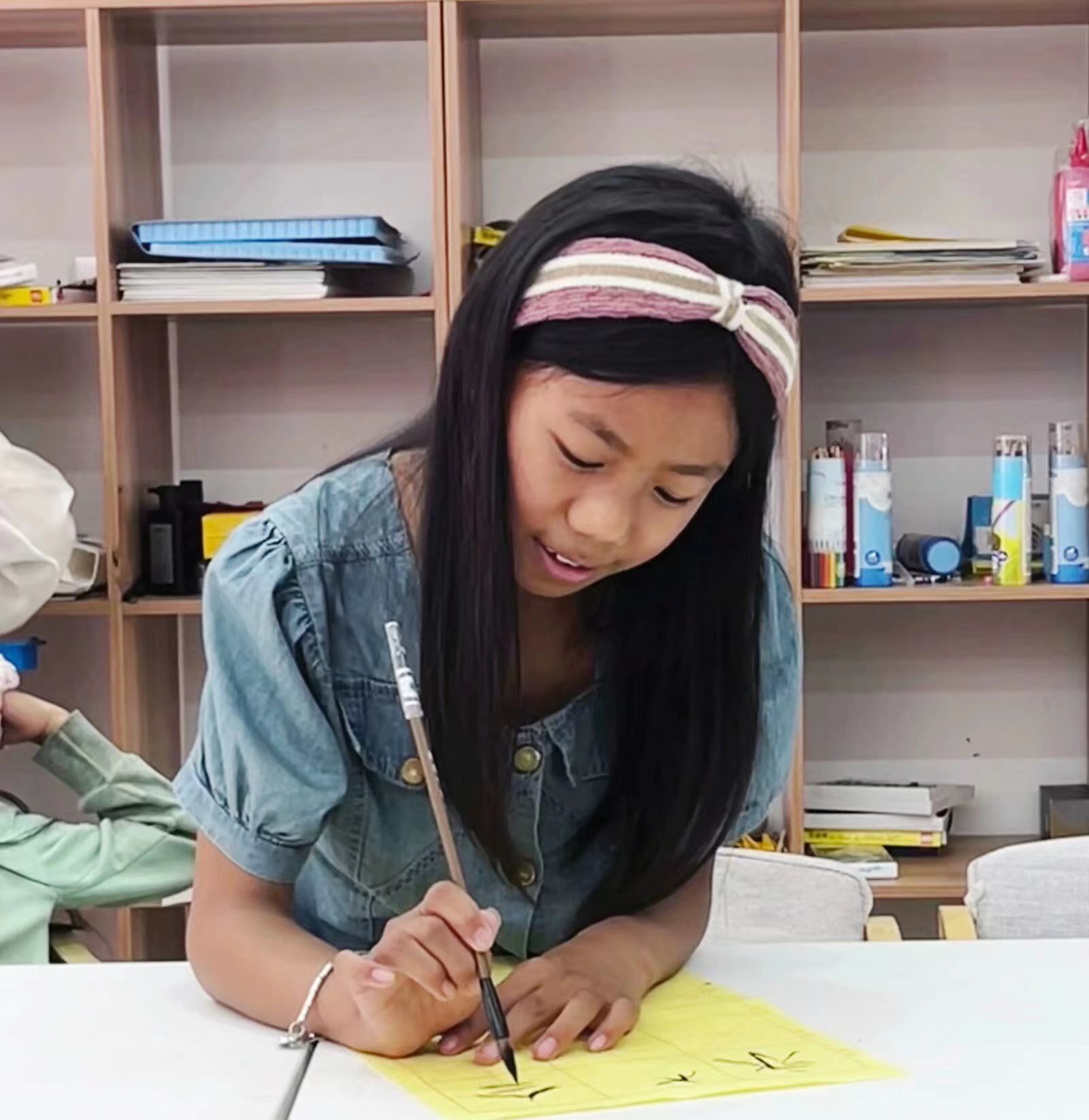 圖為認(rèn)真書寫毛筆字的小姑娘(何維希攝)