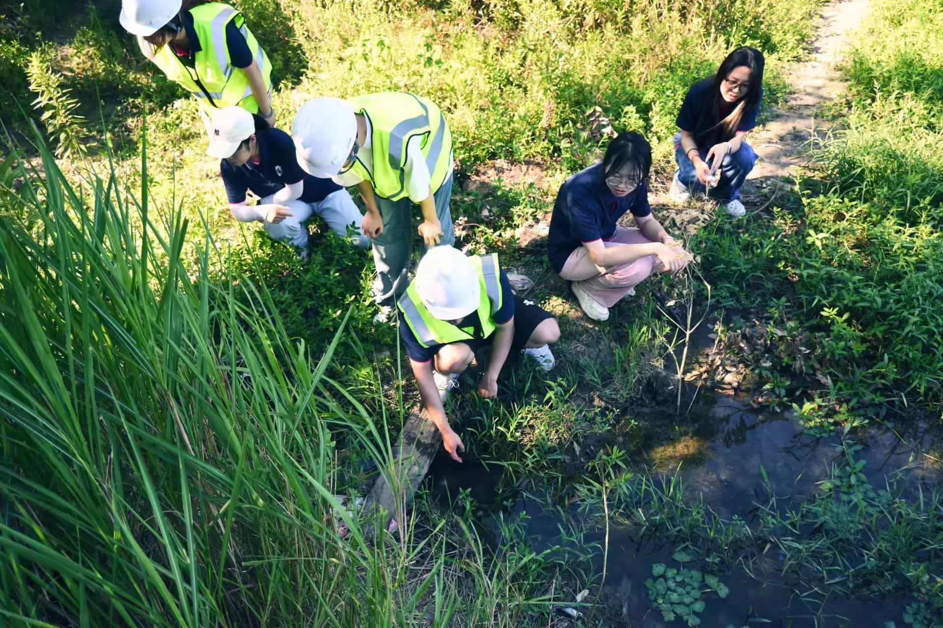 圖為實踐隊員觀察水庫水源流向。肖星源 供圖