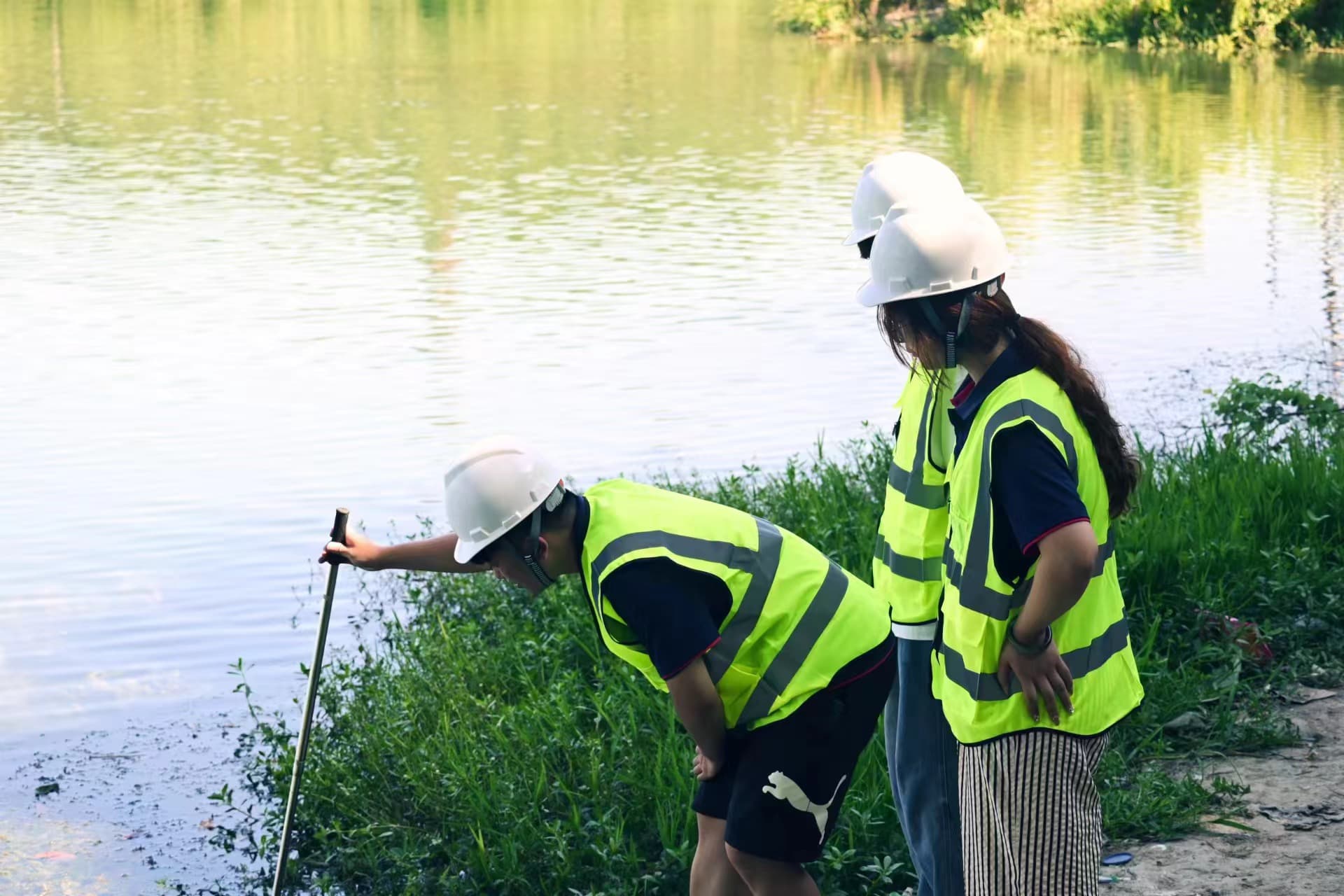 圖為實踐隊員觀察水庫植被覆蓋情況。肖星源 供圖