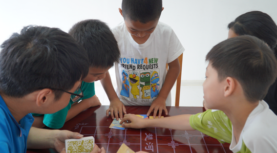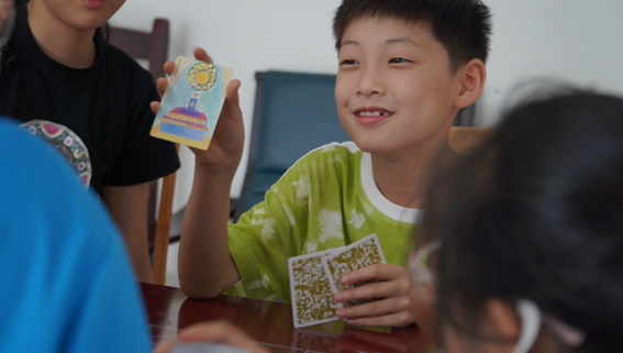 圖為吳海問同學(xué)向小朋友們介紹OH卡的游戲規(guī)則 盧皇宇 攝