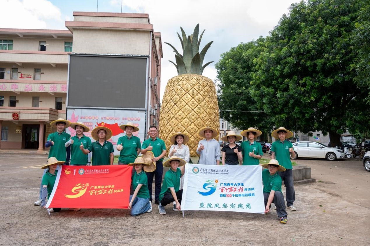 為積極響應國家全面鄉村振興戰略,加速農業現代化進程,實現鄉村全面振興的美好愿景。廣東農工商職業技術學院熱帶農林學院“墾院科技小院”菠蘿助農實踐團于7月25日至28日在指導老師馬曉曉、張祥會、林金海的引領下,深入湛江市徐聞縣曲界鎮。實踐團圍繞菠蘿產業,開展了系列實地調研與科技助農活動,以“墾院科技,助力鄉村振興”為口號,通過科技賦能,為徐聞菠蘿產業的高質量發展注入新活力。