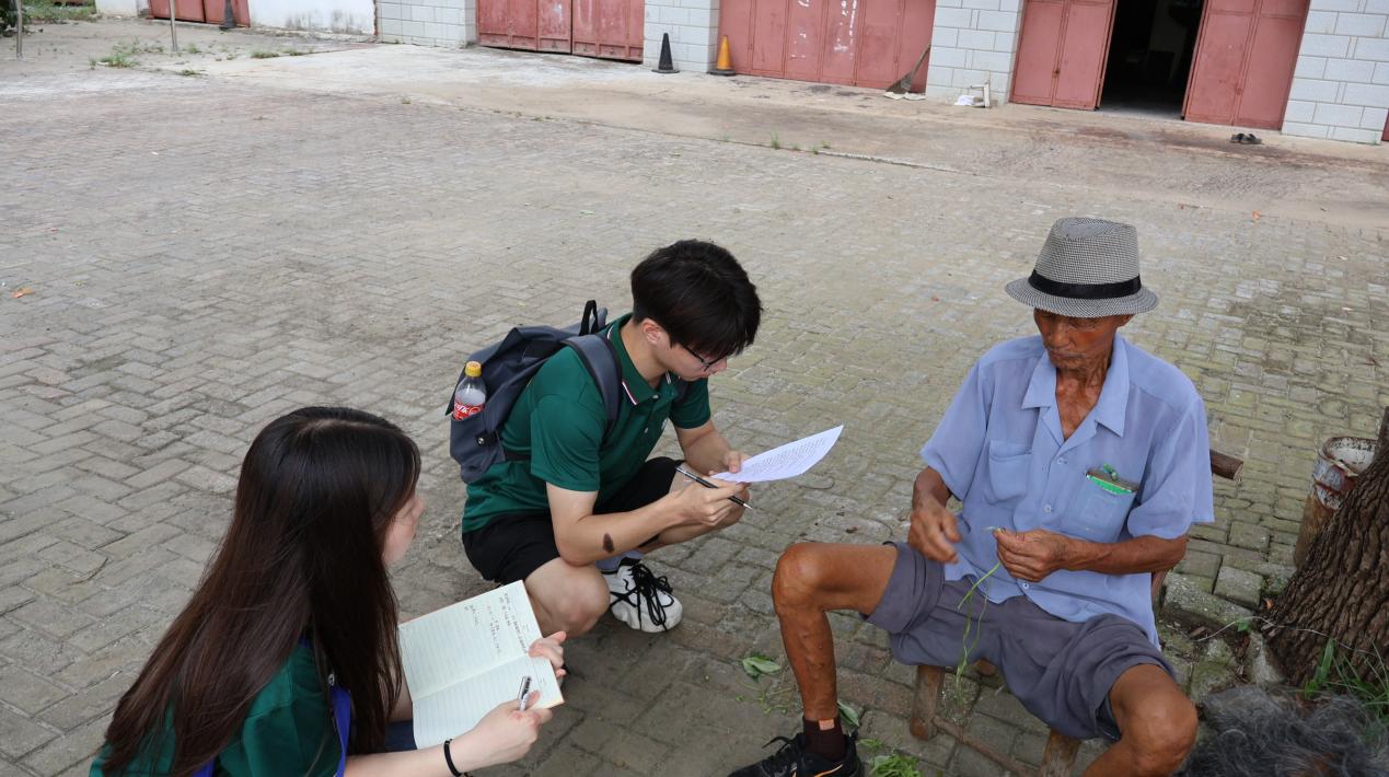 圖為實踐團成員采訪退捕后擺小攤的爺爺 通訊員 孫藝菡 供圖