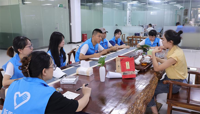 圖為實(shí)踐隊(duì)員對(duì)毛尖集團(tuán)銷售部負(fù)責(zé)人孟遠(yuǎn)佳進(jìn)行訪談。王依曈 供圖